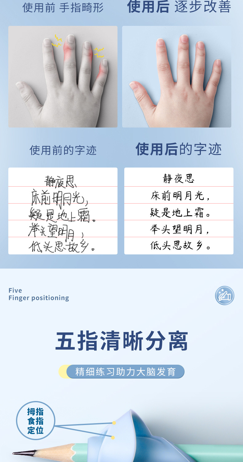 Five-finger Pen Holder Children Practice Writing Correction Posture Device Kindergarten Beginner Finger Silicone Artifact Portable Pencil Set